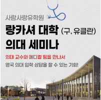 영국 의대 졸업생 세미나 안내사람사랑유학원에서 영국 의대 졸업생의 세미나를 준비했습니다. 선배의 경험담을 들어보..