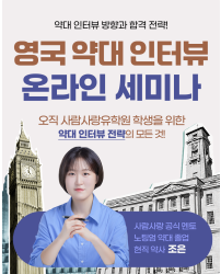 서포트,컨설팅 프로그램 2025 UCAS 자기소개서 & 에세이 원어민 특강 안내 페이지 정보 작성자 관리자 댓글 0건 조회 1,046회 작성일 25-08-04 10:21 목록 게시판 리스트 옵션 본문 신청 바로가기 이전글사람사랑 영국 약대 입학 서포트 프로그램 25.10.15 다음글약대 진학과 약사 면허의 모든 것 : 노팅엄 약대 교수 세미나, 한국 약사 예비시험 합격담, 사람사랑 약대 선후배 미팅 25.07.25 사람사랑 서포트/컨설팅 카테고리 전체열린 분류 서포트,컨설팅 프로그램서포트,컨설팅 후기 Total 31건 1 페이지 31 서포트,컨설팅 프로그램 영국 약대 인터뷰 온라인 세미나 작성자 관리자 작성일 01-02 조회 42 30 서포트,컨설팅 프로그램 2026 ProMed 온라인 NHS 병원 의료 현장 참관 프로그램 월 날짜 세션 제목 주제 &nbs.. 작성자 관리자 작성일 11-26 조회 394 29 서포트,컨설팅 프로그램 2025 영국 의대 인터뷰 준비 세미나 작성자 관리자 작성일 11-03 조회 733 28 서포트,컨설팅 프로그램 사람사랑과 함께 하는 야스민 사와 영국 명문대 & 의대 입시 컨설팅 Dr Cassidy – PPE옥스포드 외교학 강사로 테크놀로지, 외교, 정치 위기 대응을 .. 작성자 관리자 작성일 10-23 조회 641 27 서포트,컨설팅 프로그램 사람사랑 영국 약대 입학 서포트 프로그램 🌐 Web : peopleloving.co.kr💬 Kakao ID: peopleloving2📞 Tel : 02-.. 작성자 관리자 작성일 10-15 조회 507 열람중 서포트,컨설팅 프로그램 2025 UCAS 자기소개서 & 에세이 원어민 특강 안내 신청 바로가기 작성자 관리자 작성일 08-04 조회 1047 25 서포트,컨설팅 프로그램 약대 진학과 약사 면허의 모든 것 : 노팅엄 약대 교수 세미나, 한국 약사 예비시험 합격담, 사람사랑 약대 … ✅ 사람사랑 수속생이 아니어도, 약대 진학에 관심 있는 학생이라면 누구나 참석하실 수 있습니다.❗ 단, 현재 다.. 작성자 관리자 작성일 07-25 조회 2709 24 서포트,컨설팅 프로그램 2025 영국 수의대 세미나 : 브리스톨 수의대 재학생에게 직접 듣는 유학 이야기 📌 신청 방법인원 제한이 있는 소규모 미팅으로, 사전 신청이 필수입니다.아래 버튼을 클릭해 간단히 신청해주세요... 작성자 관리자 작성일 07-18 조회 1598 23 서포트,컨설팅 프로그램 야스민사와 영국 톱 대학&의대 특강 및 세미나 모아보기 영국 최고의 입시 전략가 야스민 사와와 사람사랑유학원이 만났습니다! 사람사랑유학원에서 단독으로 진행된 야스민 사.. 작성자 관리자 작성일 07-17 조회 955 22 서포트,컨설팅 프로그램 사람사랑 2025 의대 선후배 미팅 안내 작성자 관리자 작성일 06-30 조회 1042 21 서포트,컨설팅 프로그램 [사람사랑 단독] 야스민 사와 영국 톱 대학&의대 로드쇼 영국 톱 대학 & 의대 입학 세미나(서울, 부산, 제주) · 자기소개서 특강· UCAT 특강· .. 작성자 관리자 작성일 06-20 조회 2038 20 서포트,컨설팅 프로그램 전 세인트 앤드류스 대학 교수의 Leave Prepared 영어 강의 https://buly.kr/AF0GzdA 작성자 관리자 작성일 05-28 조회 1171 19 서포트,컨설팅 프로그램 영국 약대 세미나 & 실전 1:1 인터뷰 작성자 관리자 작성일 02-05 조회 1367 18 서포트,컨설팅 프로그램 Yasmin Sarwar와 이선오 대표가 함께하는 영국 입시 인사이트 QnA https://naver.me/Gq8WNSaK 작성자 관리자 작성일 12-12 조회 1535 17 서포트,컨설팅 프로그램 사람사랑 석사 유학, 맞춤형 무료 수속 안내 영국 석사 유학의 장점1. 1년 석사 과정: 영국 석사는.. 작성자 관리자 작성일 12-12 조회 2476 열린1페이지 2페이지 3페이지 맨끝 검색 검색대상 제목내용제목+내용글쓴이글쓴이(코) 검색어 필수 검색 닫기